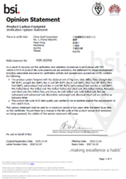 因應氣候變遷,盤查及揭露企業組織之碳足跡漸成為利害關係人重視之重大議題,為更新碳足跡資訊及建立更完善碳管理機制,中鋼執行22項大類產品如熱軋鋼捲等之碳足跡盤查作業,並由各生產單位齊心合力協助下順利完成,通過BSI公司外部查證,於114年12月25日取得查證聲明書。