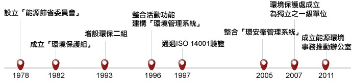 另于2011年并成立『中钢集团能源环境促进委员会』,以期有效规划、协调、推动与管考中钢集团能源环境相关事务并推动绿色钢铁及低碳能源、厂内节能减排、法规风险管控、及绿色新事业等各项工作。