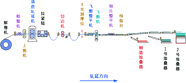 主要功能为将原料钢卷上线解卷、调质精整、切边、切片、整平、堆叠、及包装为成品钢片叠(H.R. SHEET)。